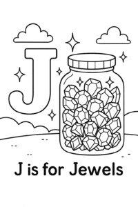 The letter “J” introduces kids to a diverse mix of creatures and objects — wild animals, underwater life, vehicles, and shiny treasures! Exploring these with themed coloring pages supports: