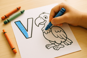 The illustrations are intentionally bold and simple, allowing for easy coloring by little hands, and they each highlight a key word starting with the featured letter. They’re perfect for themed lessons, art walls, scavenger hunts, or storytelling sessions where each letter leads to new ideas and conversations.