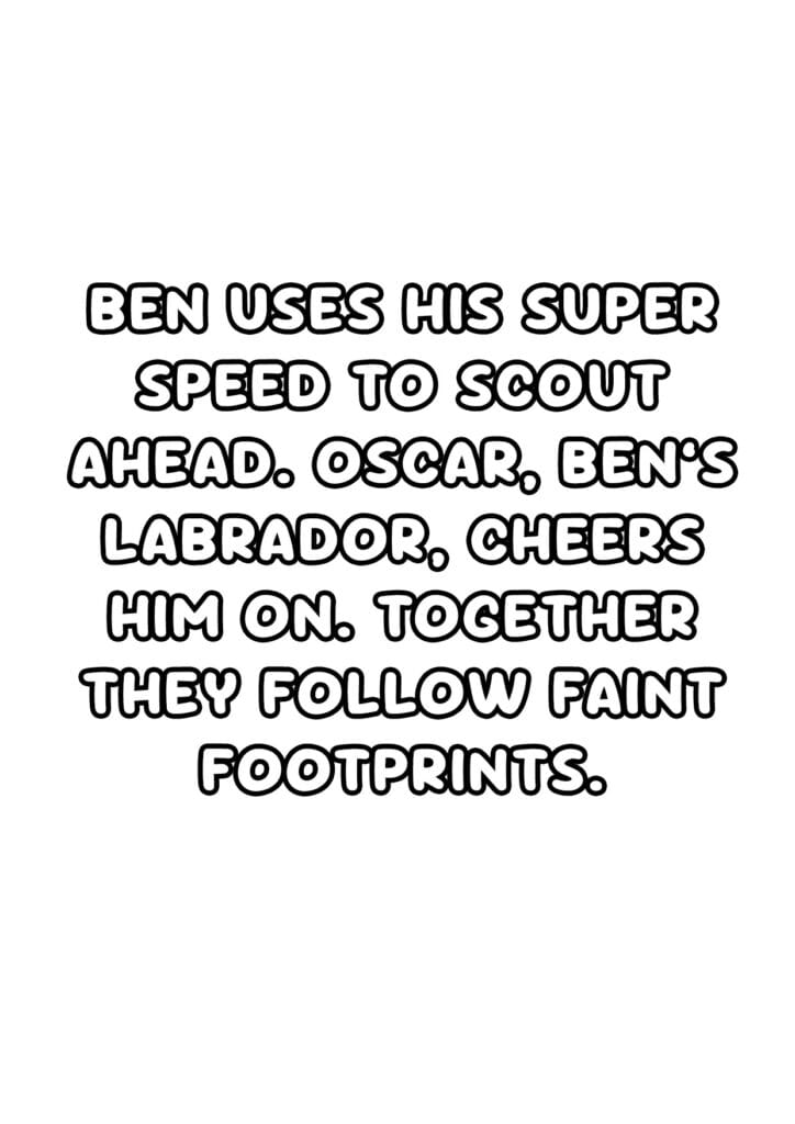 Give your child a story where they are the hero. Choose their adventure, their companion, their special power — and we’ll create a personalised 6-scene coloring book built around them and deliver it to your inbox within 48 hours. Each scene is an original illustration, and is acoompanied with story text, ready to print and colour at home.